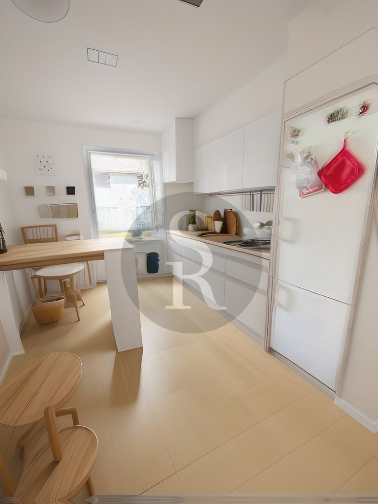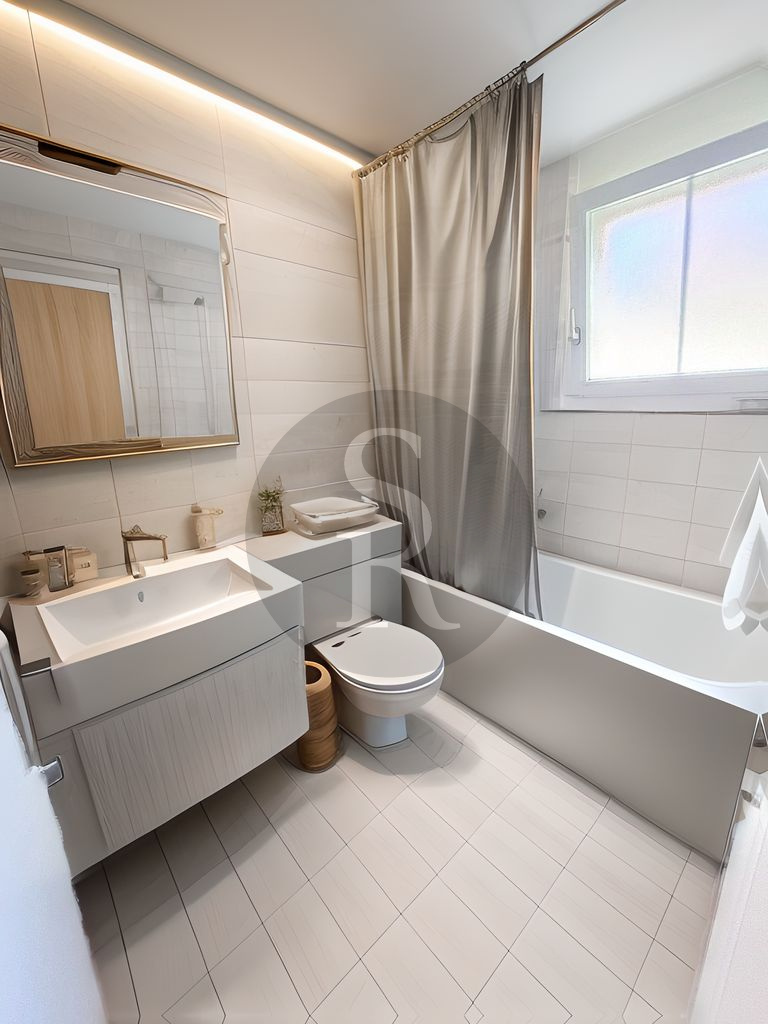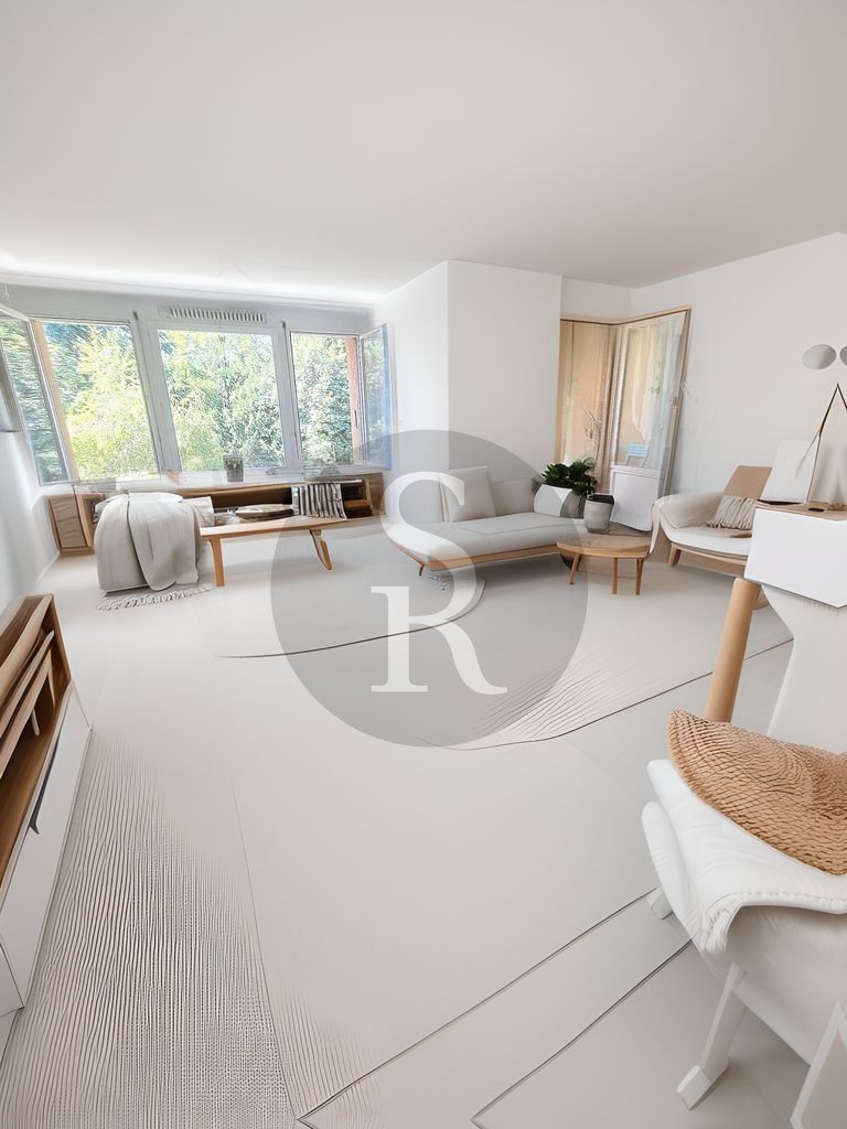 L’appartement se compose d’un vaste séjour lumineux avec cheminée, s’ouvrant sur une loggia orientée sur un espace verdoyant, parfait pour se détendre.