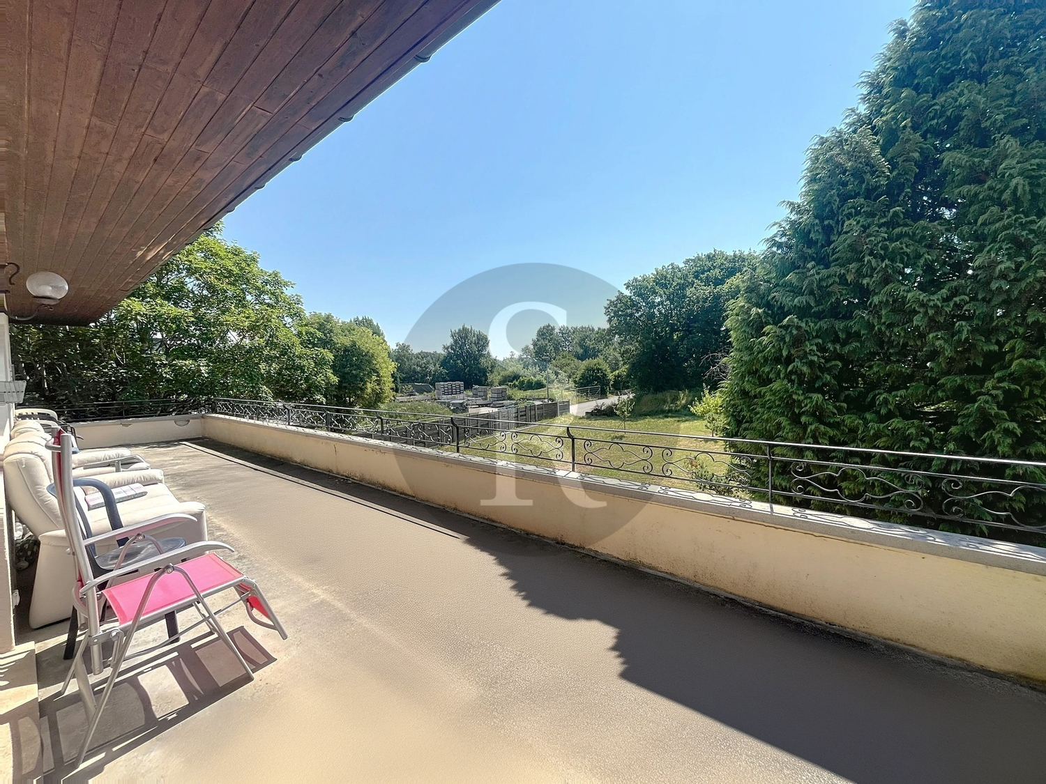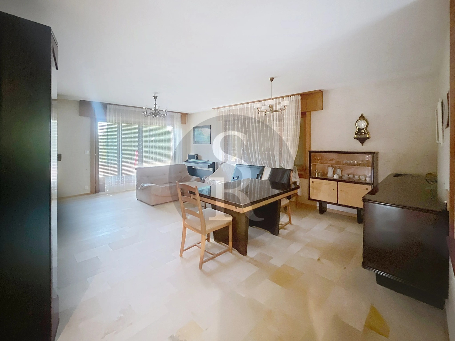 Le rez supérieur se compose actuellement d’un confortable séjour ouvert sur une grande terrasse exposée sud, d’un espace salle à manger attenant à une cuisine indépendante, conférant ainsi une fluidité entre les espaces de vie